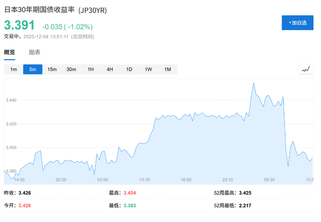消息公布后,日本30年期国债收益率跳水至3.391%,今日早些时候一度创下历史新高。内阁官房长Minoru Kihara周四表示,政府正“密切关注包括长期利率在内的金融市场趋势”。