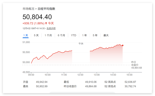 受加息预期推动,日本金融市场已作出显著反应。日本10年期国债收益率上升4个基点至1.930%,创下自2007年以来的最高水平。