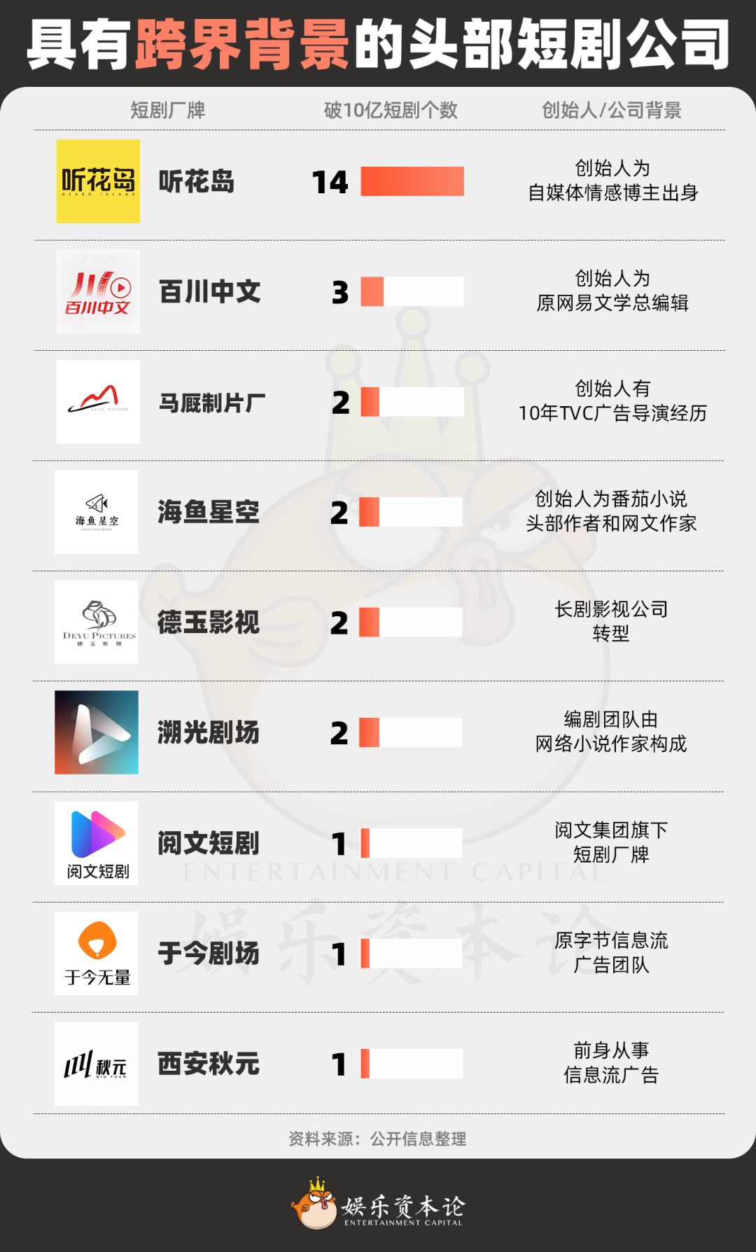 具有跨界背景的头部短剧公司,资料来源:公开信息整理