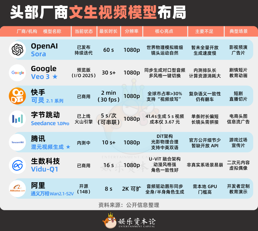 头部厂商文生视频模型布局,资料来源:公开信息整理