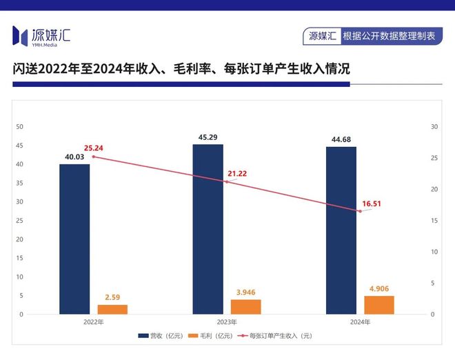 2022年至2024年,闪送的营收分别为40亿元、45.3亿元和44.7亿元;毛利呈现上升趋势,从2.6亿元增至4.9亿元。毛利率从6.48%上升至约11%。期内,闪送分别完成订单约1.586亿单、2.134亿单和2.707亿单。