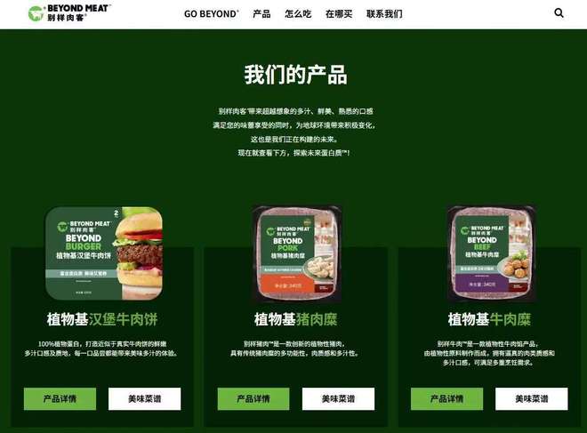 为显示"深耕中国"的诚意,Beyond Meat采取了本土化策略。2020年9月,别样肉客宣布在浙江嘉兴投资建厂,2021年4月,别样肉客位于嘉兴的植物肉生产工厂正式揭幕,这是其在美国之外的第一家端到端的生产工厂。