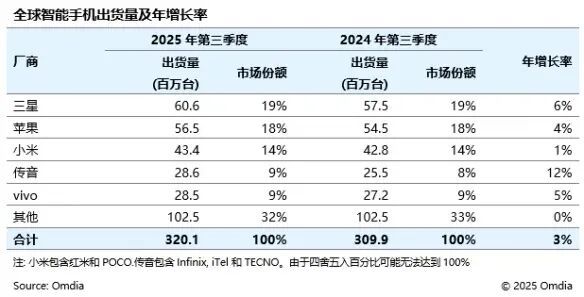 尽管据Omdia数据,2025年第三季度,三星以19%的份额稳居全球智能手机出货量榜首。然而,这份全球领先并未消除其深层焦虑。