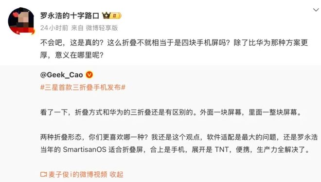 1.7万的三星三折叠手机遭罗永浩吐槽