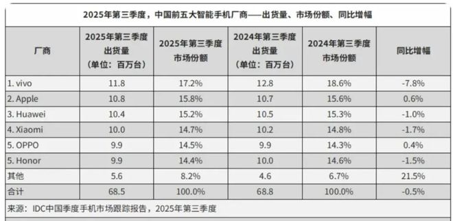据IDC最新数据,2025年第三季度中国手机市场前五名中,不见三星身影。这与它仍是全球第一的地位形成鲜明反差。