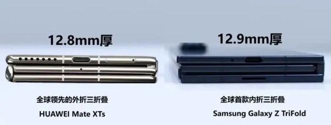 从设计来看,三星和华为的三折叠手机存在较为明显的差异。三星的TriFold设备采用双侧内折铰链设计,而华为Mate XT在折叠时则呈现出独特的Z字形结构。值得一提的是,TriFold展开状态下最薄处仅3.9毫米,内部搭载5600毫安时电池,创下三星折叠屏手机的最大电池容量纪录。