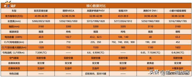 比如,理想MEGA的强项是智能化和前卫造型;小鹏X9的强项在能耗和灵活转向;极氪009和岚图梦想家的强项是中式豪华设计,前者有强悍的性能,后者有华为乾崑智驾ADS4和鸿蒙座舱5加持;腾势D9具备成熟稳定的第五代DM混动系统和全套自研的三电总成。