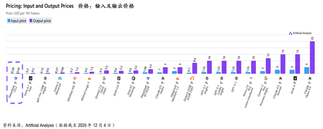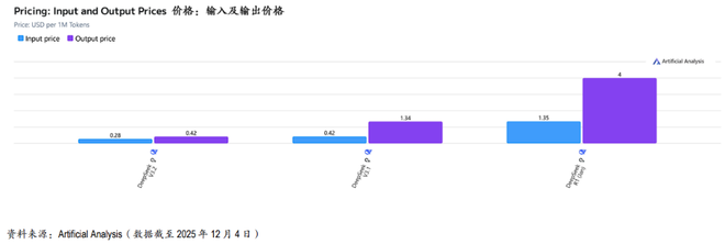 降幅对比:相比2025年9月发布的V3.1Reasoning(输入0.42/输出1.34美元),输出成本暴跌69%,输入成本降低33%。相比2025年1月的R1模型,价格优势更加呈指数级扩大。![]()