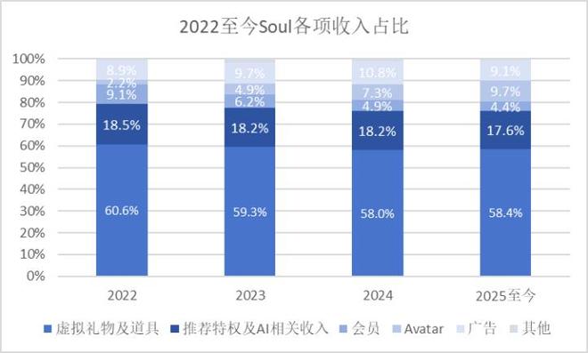 礼物和道具用来赠送好友或者实现某些功能。2025年至今,虚拟礼物及道具(包括头像)占据平台收入的58.4%。