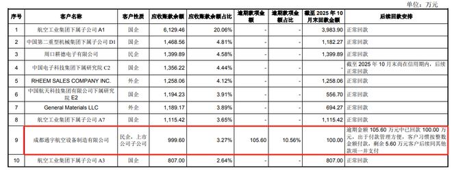 有研复材在二轮问询中回应称,除成都通宇外,公司前十大应收账款客户主要为国企及国内外知名民企,经营情况较好,不存在较大回款风险。