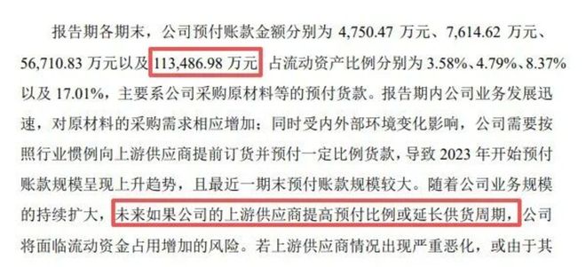 还有一个数据值得深思。上市公告书显示,摩尔线程的预付账款规模飙升至11.3亿元,占流动资产的比例高达17.01%。 这在芯片设计行业是非常罕见的。通常芯片设计公司是轻资产,为什么要预付这么多钱? 答案很可能是:为了抢产能。