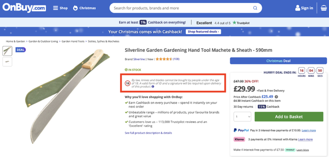 一位刀具的卖家表示,在现在的英国,普通砍刀仍然可以合法拥有。只有“没有正当理由且在公共场合携带砍刀”才算是犯罪行为,不过大家应该都能想到,这种罪名有多难界定。