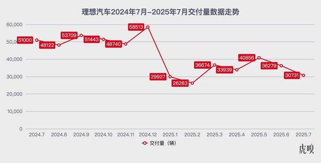 理想来到近三年来的最难时刻。虎嗅汽车分析过,理想增程基本盘被问界、小米等竞争对手击穿,甚至受到零跑、深蓝等品牌由下至上的性价比碾压。理想L9月销已不足5000辆,L6 也从接近月销 27000 辆的高点滑落至 15000 辆左右。7月,仅是问界M9的单月销量就超过了理想L9+L8+L7之和。