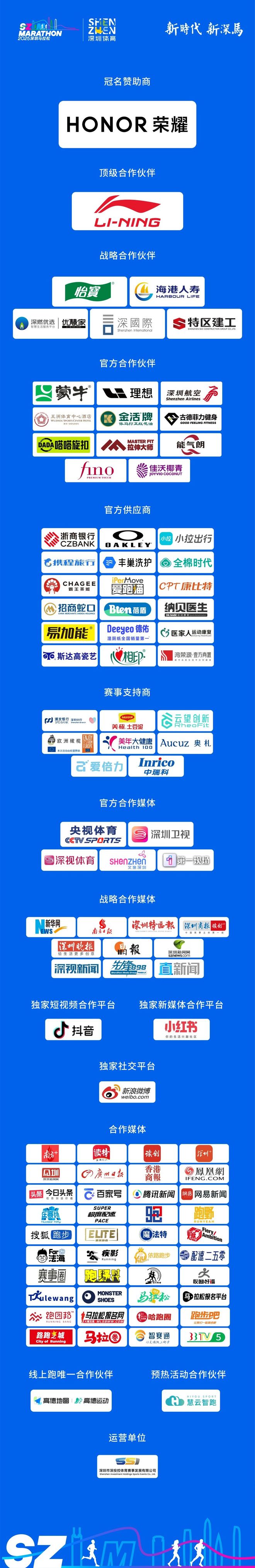 记者梳理发现,2025年深圳马拉松的赞助体系层次分明,就像一个清晰的金字塔。来自科技、汽车、金融、消费等领域的四十多个品牌,通过不同层级的合作,深度参与到这场城市盛事中。