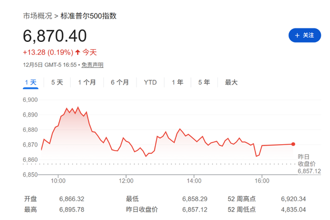 据追风交易台消息,尽管宏观环境复杂,摩根大通对全球股票市场仍持积极态度,并将标普500指数2026年年底的目标价定为7,500点。策略师认为,“AI超级周期”正在推动创纪录的资本支出和盈利扩张,这将是下一年度最为关键的投资主线。若美联储因通胀改善而进一步放松政策,标普500指数甚至有望在2026年突破8000点。截至发稿,标普500期货涨0.19至6870点。