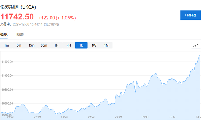 LME铜价涨幅扩大,突破每吨11742美元,创纪录新高。
