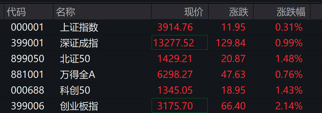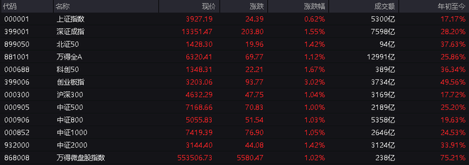 创业板指涨超2%。