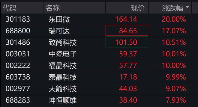 算力硬件股涨势扩大,东田微20cm涨停,天孚通信涨超18%,源杰科技涨超10%,长光华芯、仕佳光子、中际旭创、永鼎股份涨超7%,股价均创出历史新高。