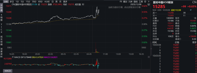 富时中国A50指数期货盘初涨0.39%,上一个交易日夜盘收涨0.41%。
