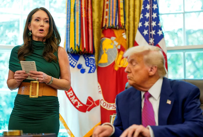 ▲美国农业部长布鲁克·罗林斯与美国总统特朗普