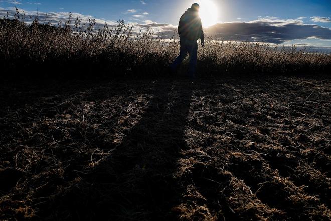 ▲美国马里兰州的大豆种植户特拉维斯·哈奇森表示,大豆价格“因为贸易战而非常低迷” 图据视觉中国