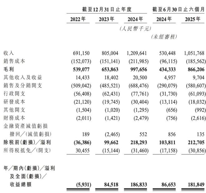 招股书显示,2022年到2024年,林清轩营收实现了16.5%、50.3%的增长,尤其是2025年上半年营收达到10.52亿元,几乎是半年卖了一年的量。