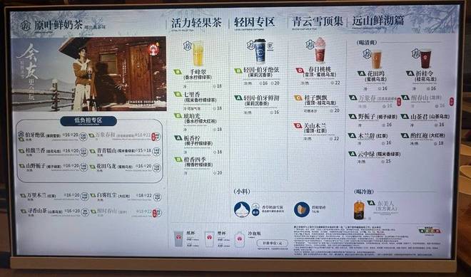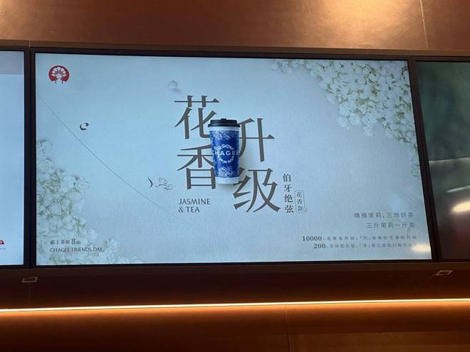 进入12月,全国多地霸王茶姬门店电子屏上,都在滚动展示霸王茶姬的新品——伯牙绝弦花香款。
