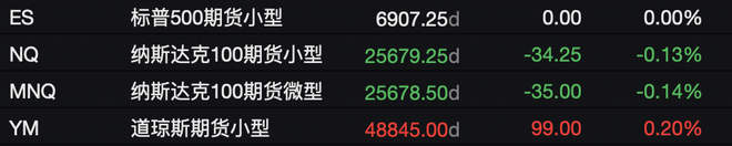 - 标普500期货持平,纳斯达克100期货跌超0.1%,道琼斯期货涨0.2%