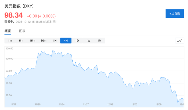 美元指数周五已接近两个月来的低点,并可能连续第三周录得下跌。市场普遍预期美联储明年将降息,与此同时欧洲明年加息预期重燃,货币政策分化将导致美元承压。![]()