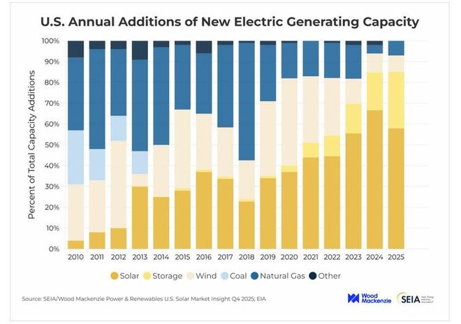 得克萨斯州、印第安纳州、佛罗里达州等传统能源州在太阳能新增装机榜单中名列前茅,表明可再生能源在美国能源结构中的地位日益重要,跨越了传统的政治分野。