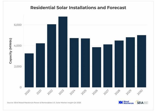 美国太阳能工业协会(SEIA)和Wood Mackenzie最新发布的《美国太阳能市场洞察2025年第四季度报告》显示,第三季度新增太阳能装机容量达到11.7吉瓦(直流),同比增长20%,环比大幅增长49%这一表现创下行业历史上第三大季度部署纪录。