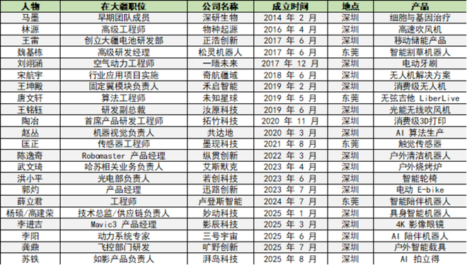 看他们的履历就能明白:陶冶2012年进入大疆,从工程师做起,之后做过动力系统部门经理、明星产品Mavic Pro的产品经理,最终升任大疆消费级无人机事业部负责人,履历覆盖技术、产品、销售、管理等岗位。其他四位联合创始人,也都分别来自大疆的算法、系统工程、产品等核心位置。