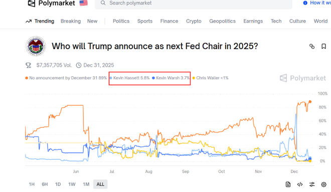 宇宙行CEO支持沃什出任美联储主席候选,市场预测概率激增