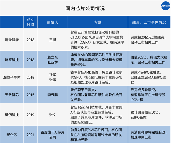 这些公司虽然细分定位不同,但和摩尔线程、沐曦股份类似的是,它们的核心能力起点都高度依赖创始团队背景。从已披露信息看,多数国产AI芯片公司创始人并非仅仅拥有“行业经验”,而是主导过国际顶尖芯片产品从设计到量产的全流程。