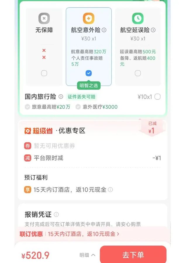 然而,问题恰恰出在这里。爆料者指出,如果你点击了“继续支付”,那么你已经“被自愿”地购买了飞猪推荐的旅行保险。这笔保费并不会在此时明确弹窗提醒你,而是会悄无声息地计入你最终的支付总额中。等你回过神来,可能早已付款成功,绝对会中招。