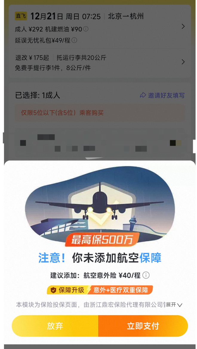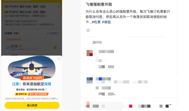 飞猪利用消费习惯设陷阱,强制购买保险,‘继续支付’背后的消费陷阱