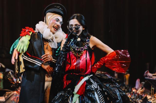 深谙古希腊戏剧和当代音乐剧的泰勒· 麦克是一位通才剧作家,集歌手、演员、作家、作曲家、行为艺术家于一身,风格奇幻、荒诞戏谑,常以边缘视角挑战社会主流,致力于重塑历史并激发观众参与。他涉猎广泛、驳杂贯通,继承了传奇歌手朱迪·加兰(Judy Garland)和詹妮斯·乔普林(Janis Joplin)向灵魂深处挺进的乐风,融入贝蒂·米德勒(Bette Midler)标志性的犀利幽默,借鉴查尔斯·卢德兰(Charles Ludlam)与埃西尔·艾奇尔伯格(Ethyl Eichelberger)的荒诞主义、变装艺术或媚俗美学等,又始终彰显个人的独特魅力。他精巧编排小丑戏、滑稽表演和变装艺术,结合垃圾素材和混搭元素,搭建超越性别的酷儿空间,亮出政治讽刺与激进社会评论的锋兵利器,将荒诞剧体裁重新诠释为“直击人心”的美国文化符号,无不体现于不同阶段的诸多作品之中,如《年轻女士》(Young Ladies)、《泰勒·麦克的贝斯特》[The Be(A) st of Taylor Mac]、《赤潮绽放》(Red Tide Blooming)、《自由主义的面孔》(The Face of Liberalism),以及《莉莉的复仇》(The Lily ‘s Revenge)、《为地球母亲徒步穿越美国》(Walk across America for Mother Earth )……