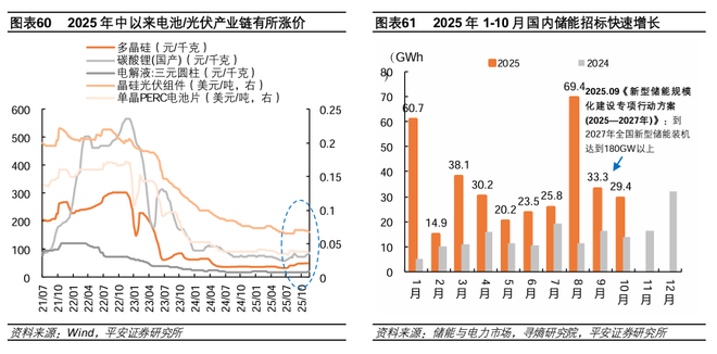 锂电与储能:储能链条景气度超预期,带动电池、能源金属及相关化工材料(磷化工、氟化工)价格企稳回升。