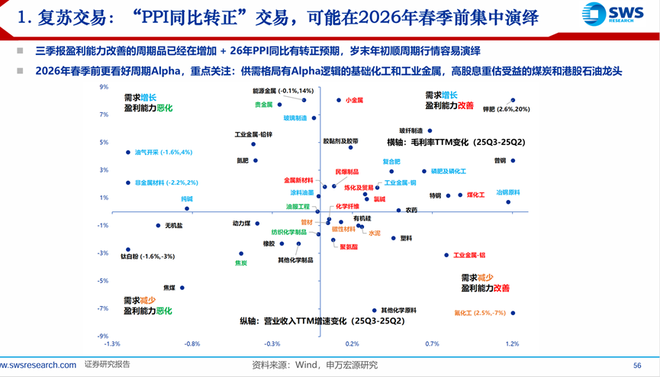 - 复苏交易(周期Alpha):重点关注供需格局有Alpha逻辑的基础化工和工业金属。随着PPI同比转正预期的演绎,这类顺周期资产可能在2026年春季前集中表现。