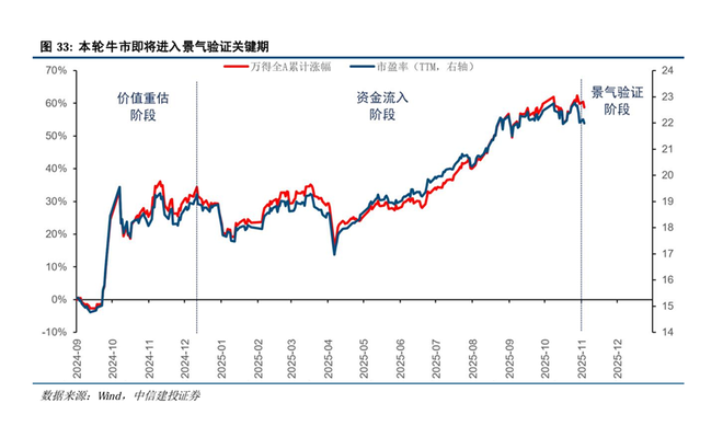 回顾历史几轮牛市节奏,市场往往经历“价值重估”到“资金流入”,最终进入“景气验证”。报告表示,目前A股正处于从资金驱动向景气验证过渡的关键节点。如果科技及新兴产业的业绩高增长获得验证,科技牛有望延续;若业绩不及预期,市场可能面临风格切换或阶段性调整。因此,2026年的投资策略应更注重业绩确定性,避免在估值高位盲目追涨。