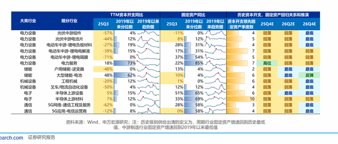 申万宏源强调,2026年中将是关键的时间窗口。A股中游制造的供给出清线索已非常明确。经历了产能投放带来的阶段性“内卷”后,预计到2026年,产能形成增速预计降至2-3%,低于5%左右的需求增速中枢。这一基本面供需关系的逆转,将使“政策底、市场底、经济底”依次出现的分析框架回归有效,并在2026年中“政策底”可能验证的时刻,触发全面牛市行情的启动。