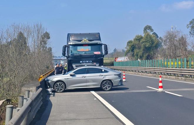 据高速交警通报,2025年12月9日18时36分许,罗某驾驶川AJXXX8号重型仓栅式货车沿S66隆汉高速公路从汉源往峨眉山方向行驶,行至240公里500米处时,与前方因故障停放在车道内的川W2XXXW号轻型仓栅式货车发生首尾剧烈碰撞。事故造成两辆车严重损毁、两车所载货物全部受损,川W2XXXW号车驾驶员巴足某某受伤,高速公路路产也受到不同程度损坏,现场一度出现“人仰牛翻”的惊险场面。