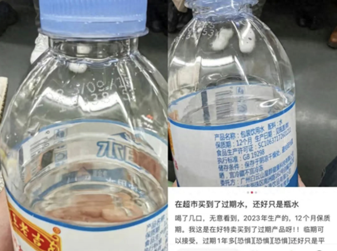 今年9月,有北京的消费者发文称,他在好特卖买到一瓶过期一年多的饮用水。好特卖官方客服回应媒体称,经自查,确认该顾客投诉的商品是2025年9月15日生产的,只是包装上的“2025年”中的数字“5”,因为打印不连贯,导致顾客看错为“3”。