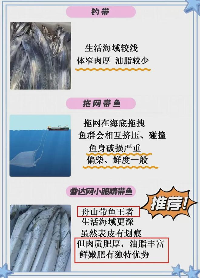 而且,我们的还是雷达网带鱼,这是一种捕捞方式,在3种方式中,雷达网带鱼 > 钓带 > 拖网带鱼。