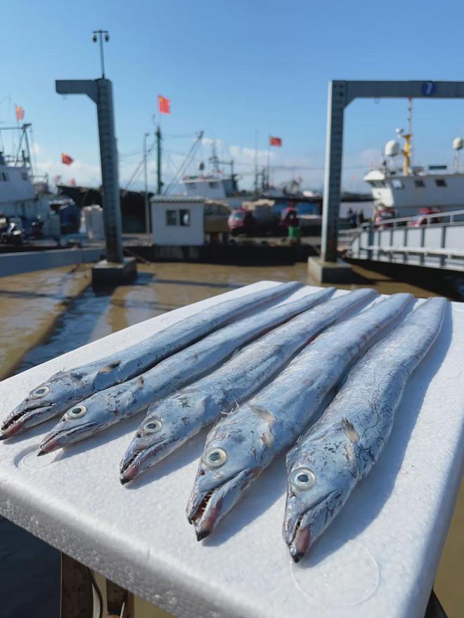 眼下正是舟山雷达网带鱼开捕初期,带鱼肉厚,富有油性,价格比其他季节翻一番 ,很多高档海鲜餐厅,一条就要几百块。