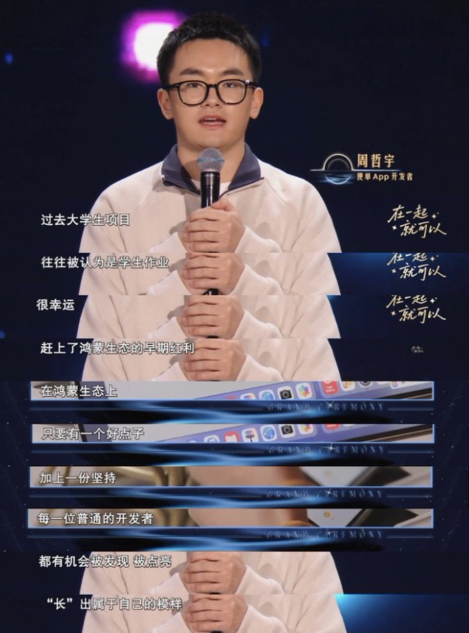 这正是昨天在央视播出的《鸿蒙星光盛典》“在一起” 的核心主题:聚是一团火,散是满天星,中国科技的每一步跨越,都源于千千万万人的携手同行。