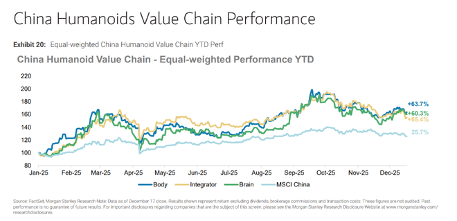 摩根士丹利分析师警告称,尽管人形机器人的热情在2026年将一波接一波地涌现,但投资者应关注更为宏大的图景