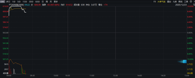 12月23日周二,市场情绪达到沸点。在中国市场,广州期货交易所的铂金和钯金主力合约双双触及10%的涨停板,创下上市以来新高。目前,二者涨幅稍有回落。
