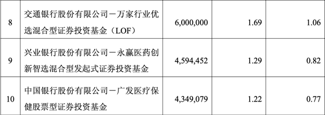 12月19日,荣昌生物(688331)披露的前十大股东持股情况显示,截至2025年12月15日,万家基金黄兴亮管理的万家行业优选、永赢基金单林管理的永赢医药创新智选、广发基金吴兴武管理的广发医疗保健,分别位列第8至第10大股东,持股数量依次为600万股、459.45万股、434.91万股。