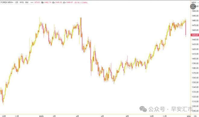 “财政+养老金+央行”三方协同以捍卫韩元币值。早间8:00左右,韩国国民年金公团(持有约5400亿美元养老海外资产)启动了新一轮战略性外汇对冲操作,USDKRW应声下跌10个大点,随后韩国央行和财政部联手发文力挺韩元。